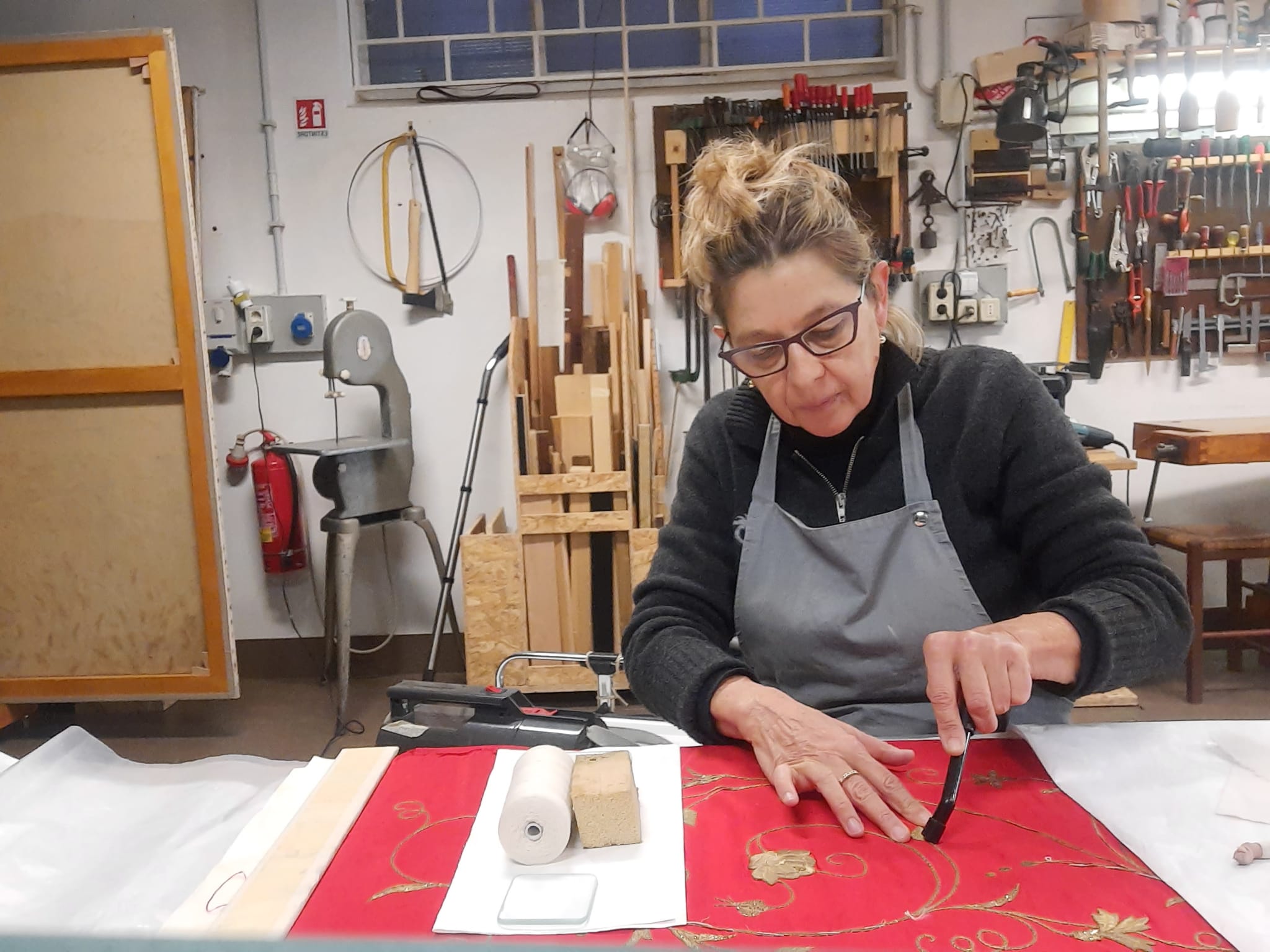 Il laboratorio ha avuto, inizialmente, l’obbiettivo di insegnare a giovani sensibili e desiderosi di apprendere, sotto la guida un restauratore professionista, il restauro di manufatti tessili, di piccole dimensioni, principalmente di arte sacra. Dopo l’inizio del laboratorio-bottega, su richiesta degli stessi partecipanti, il laboratorio si è articolato in un vero corso di studi triennale, con lezioni teoriche e laboratoriali.